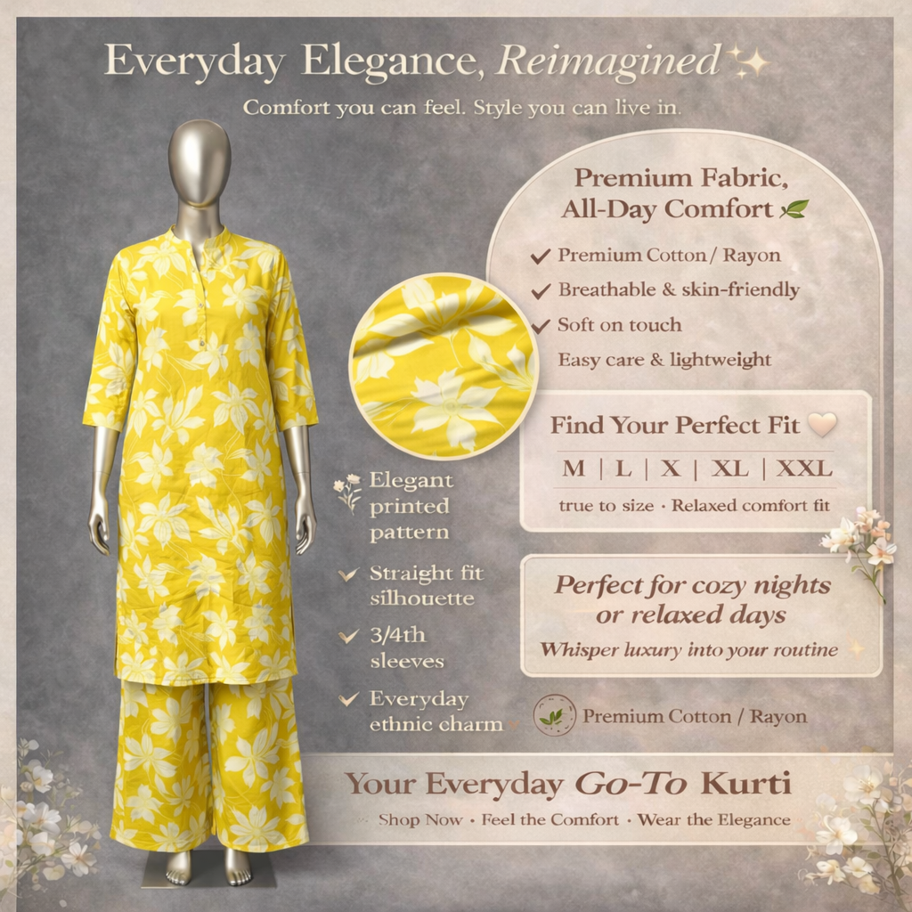 Step out in style with this chic Co-ord Set, featuring Premium Cotton/Rayon for the ultimate soft touch. The lightweight and skin-friendly material ensures you stay comfortable while looking effortlessly put together. Designed for the modern lifestyle, this easy care set is perfect for lounging or stepping out.
