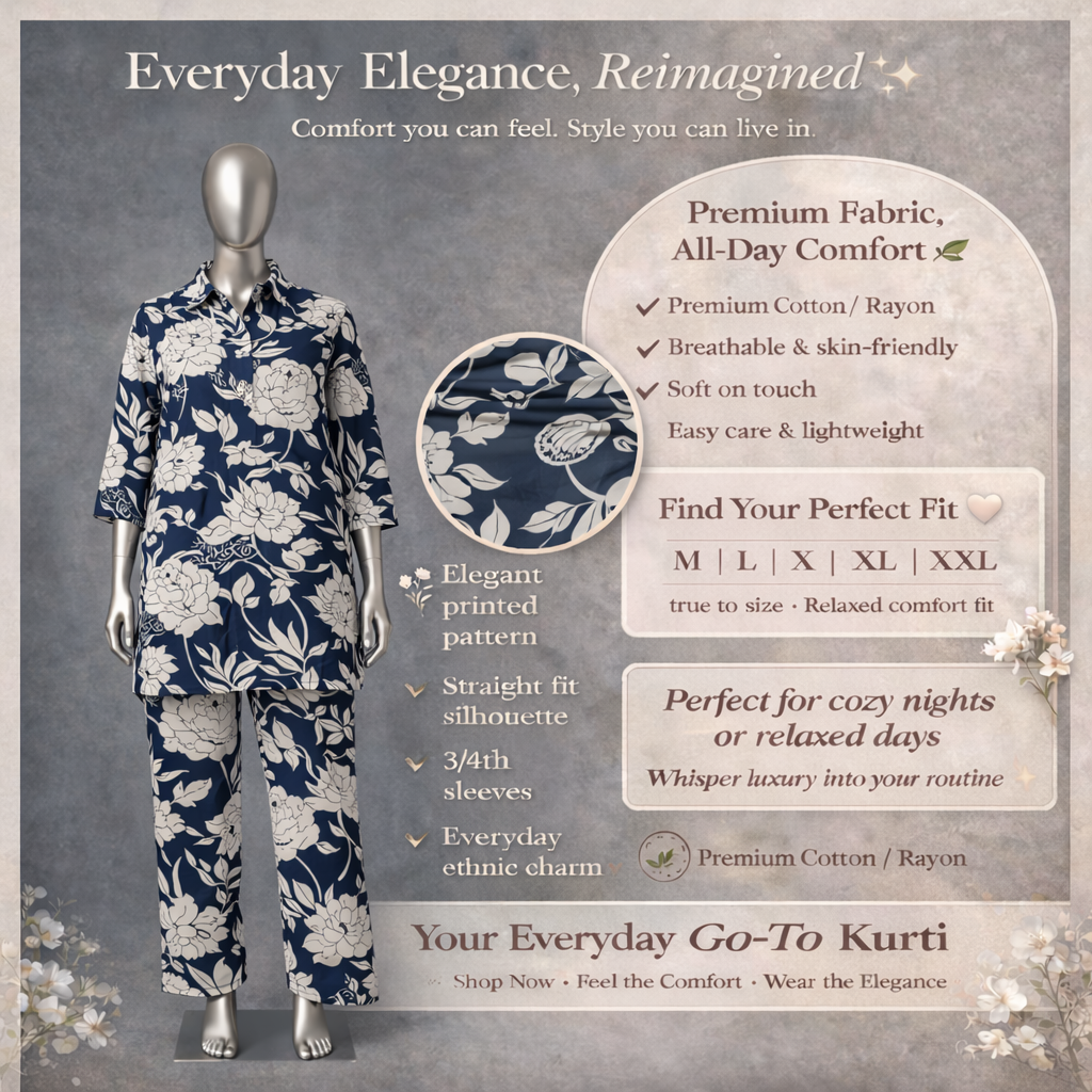 Upgrade your fashion game with a matching set that prioritizes Premium quality and skin-friendly comfort. Made from soft, Premium Cotton/Rayon, this lightweight ensemble flows with you for unrestricted movement. Low maintenance and high fashion, its easy care fabric makes it a versatile addition to your closet.