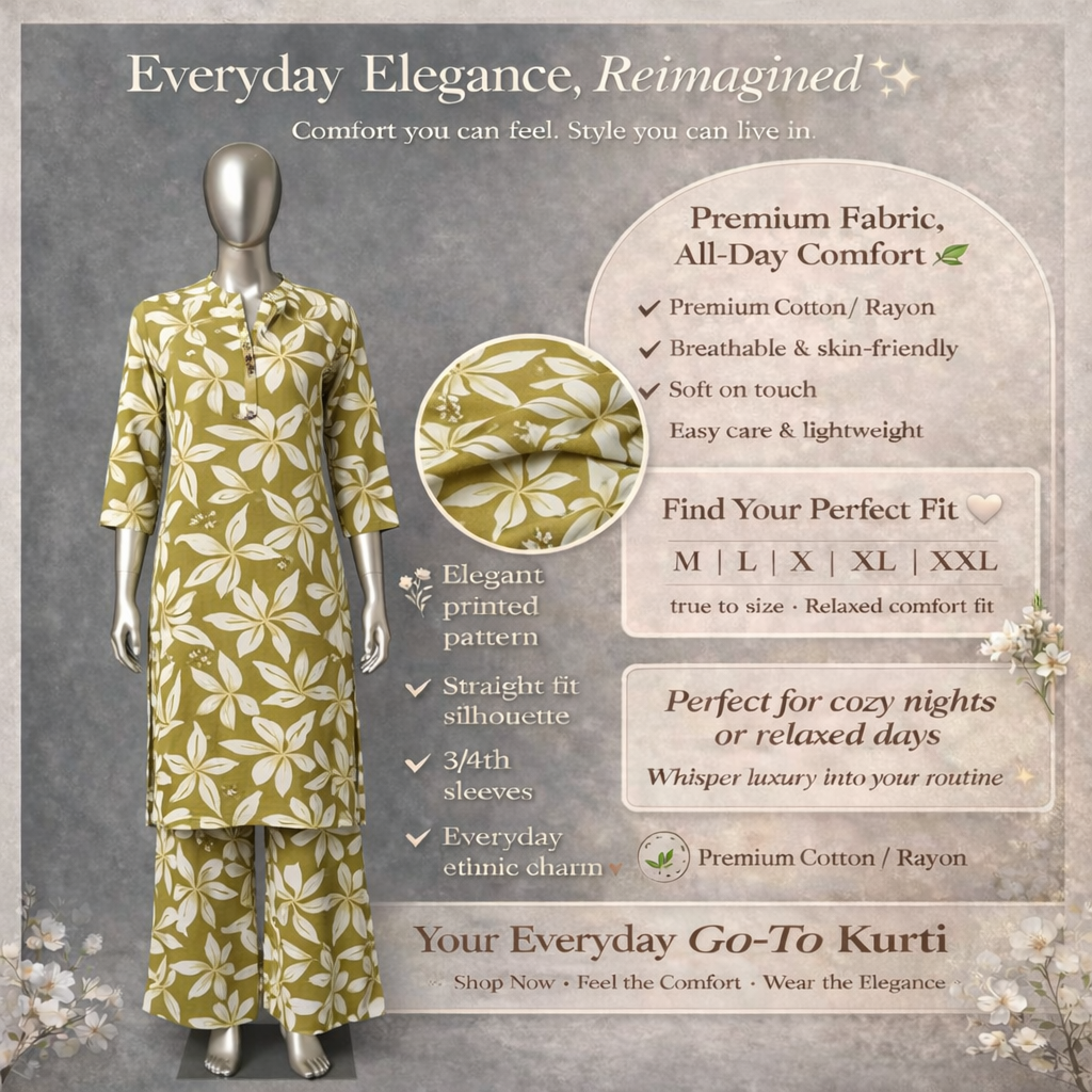 Upgrade your fashion game with a matching set that prioritizes Premium quality and skin-friendly comfort. Made from soft, Premium Cotton/Rayon, this lightweight ensemble flows with you for unrestricted movement. Low maintenance and high fashion, its easy care fabric makes it a versatile addition to your closet.