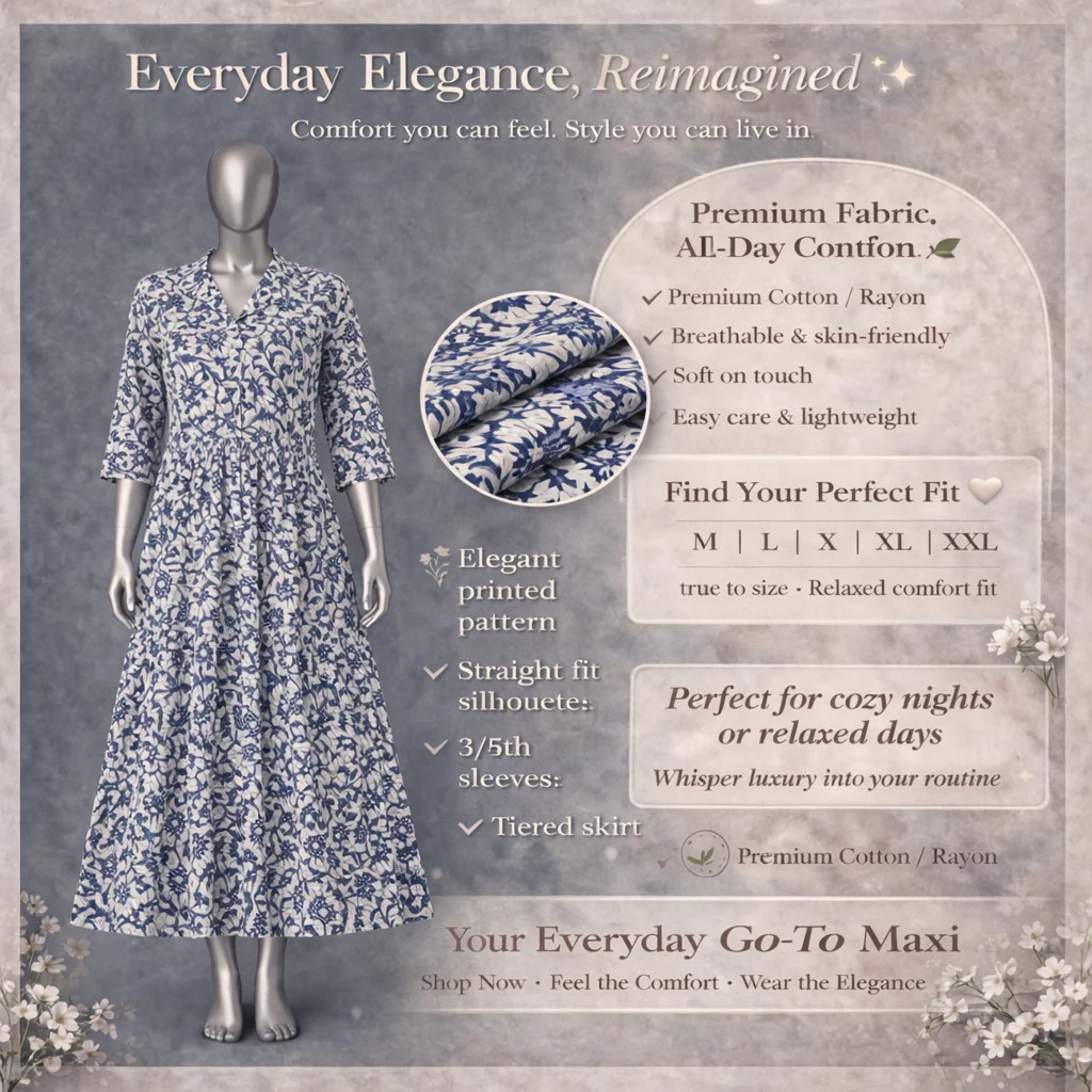 low with grace in this exquisite Long Gown, tailored from Premium Cotton/Rayon for a regal yet comfortable fit. The soft, skin-friendly texture hugs you gently, while the lightweight design keeps you breezy all day. Perfect for special moments, this easy care gown combines durability with timeless beauty.