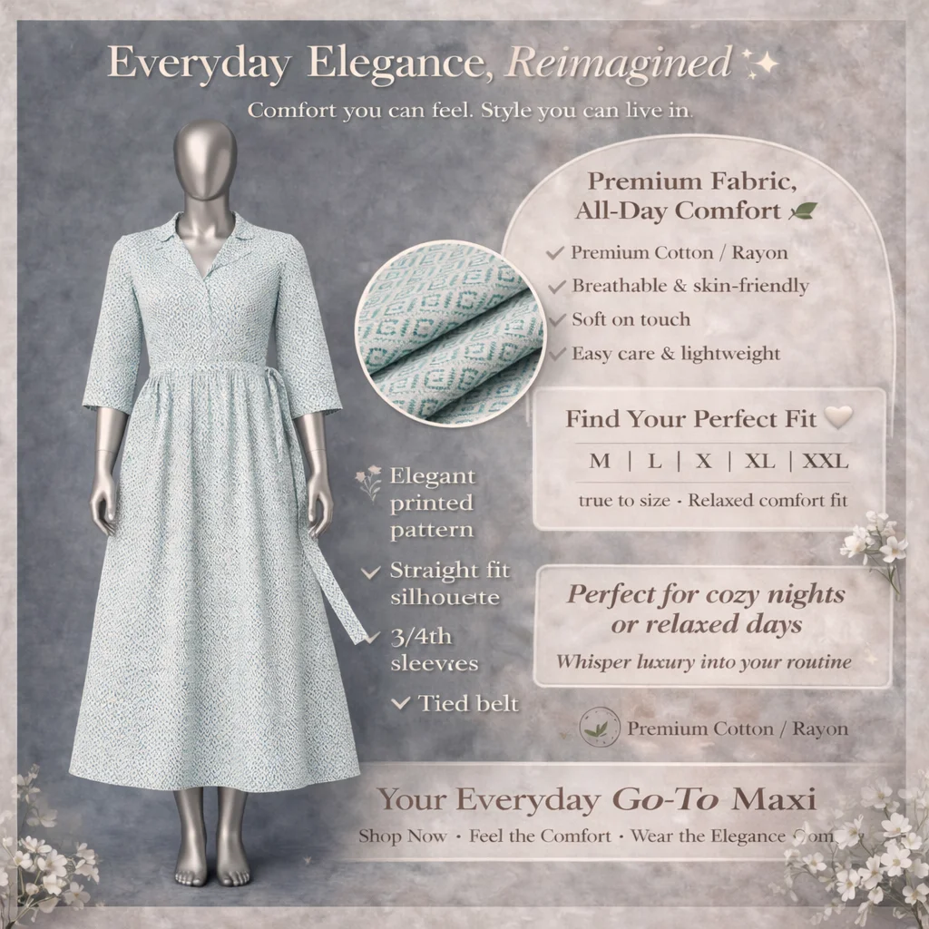 Flow with grace in this exquisite Long Gown, tailored from Premium Cotton/Rayon for a regal yet comfortable fit. The soft, skin-friendly texture hugs you gently, while the lightweight design keeps you breezy all day. Perfect for special moments, this easy care gown combines durability with timeless beauty.