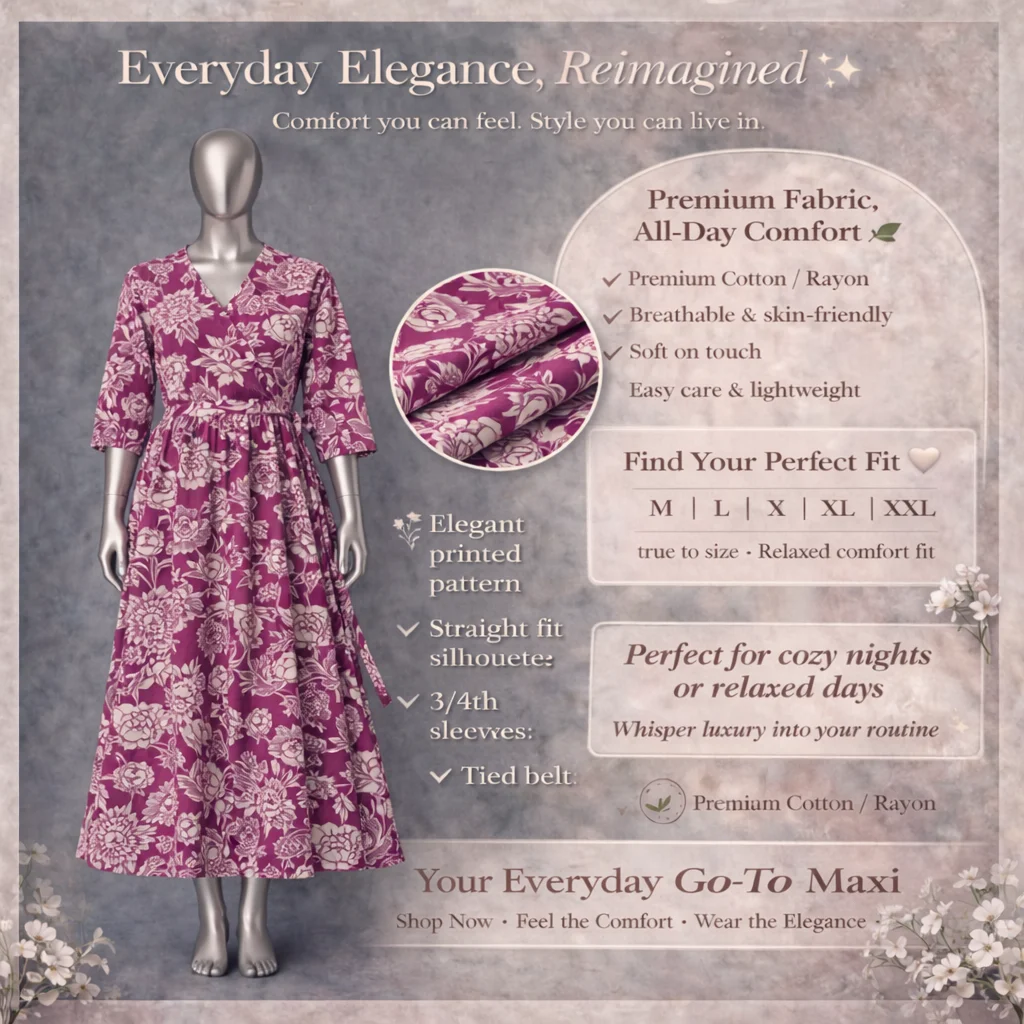 Wrap yourself in the luxury of our Premium Long Gown, designed with soft, skin-friendly fabric for delicate comfort. The Premium Cotton/Rayon material offers a lightweight drape that moves beautifully with every step. An elegant choice that is surprisingly easy care, ensuring you look stunning without the fuss.
