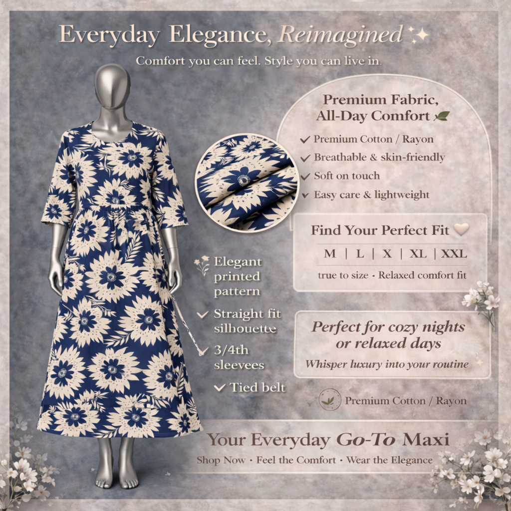 Wrap yourself in the luxury of our Premium Long Gown, designed with soft, skin-friendly fabric for delicate comfort. The Premium Cotton/Rayon material offers a lightweight drape that moves beautifully with every step. An elegant choice that is surprisingly easy care, ensuring you look stunning without the fuss.