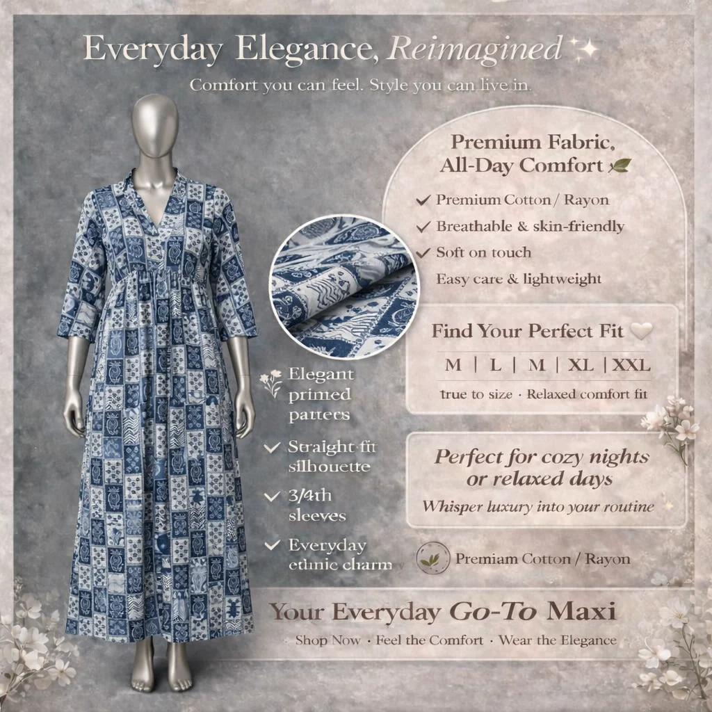 Wrap yourself in the luxury of our Premium Long Gown, designed with soft, skin-friendly fabric for delicate comfort. The Premium Cotton/Rayon material offers a lightweight drape that moves beautifully with every step. An elegant choice that is surprisingly easy care, ensuring you look stunning without the fuss.