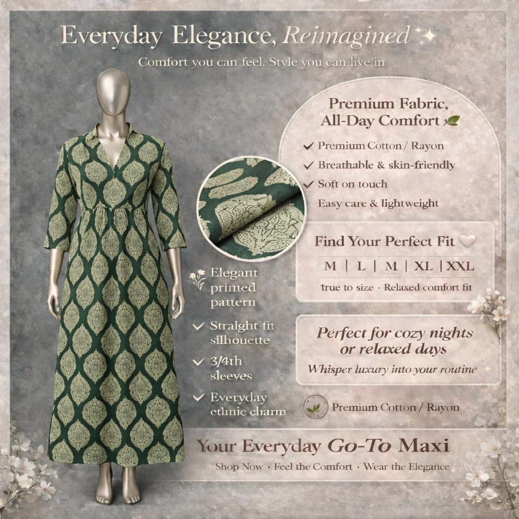 Flow with grace in this exquisite Long Gown, tailored from Premium Cotton/Rayon for a regal yet comfortable fit. The soft, skin-friendly texture hugs you gently, while the lightweight design keeps you breezy all day. Perfect for special moments, this easy care gown combines durability with timeless beauty.