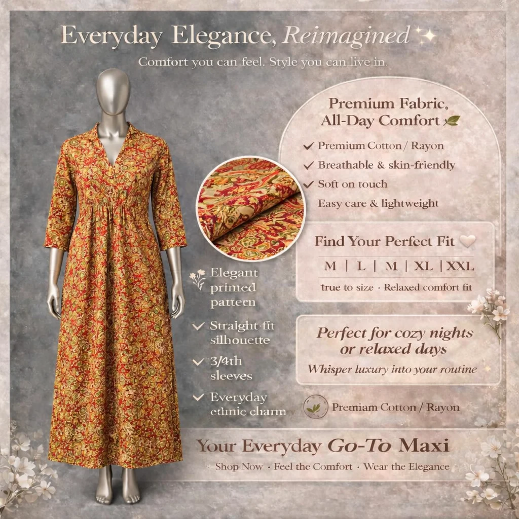 Wrap yourself in the luxury of our Premium Long Gown, designed with soft, skin-friendly fabric for delicate comfort. The Premium Cotton/Rayon material offers a lightweight drape that moves beautifully with every step. An elegant choice that is surprisingly easy care, ensuring you look stunning without the fuss.
