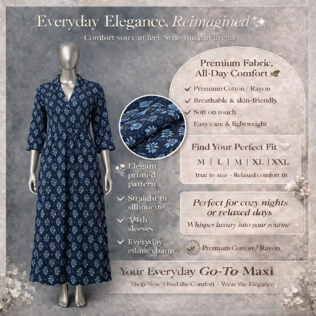 Discover the perfect blend of style and ease with this Premium Long Gown, crafted from high-quality Cotton/Rayon. Its lightweight and soft construction makes it incredibly skin-friendly, ideal for long hours of wear. Experience high-fashion aesthetics with easy care practicality for a look that truly shines.